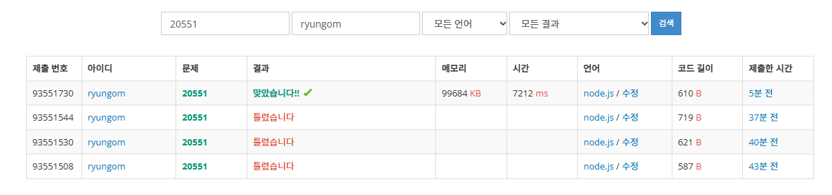 일단... 맞았다고 나오긴 하는데 시간제한 조건인 4초보다도 높기도 해서 조건문으로 따지면 틀리긴 했는데 맞았다고 하니 맞은걸로...